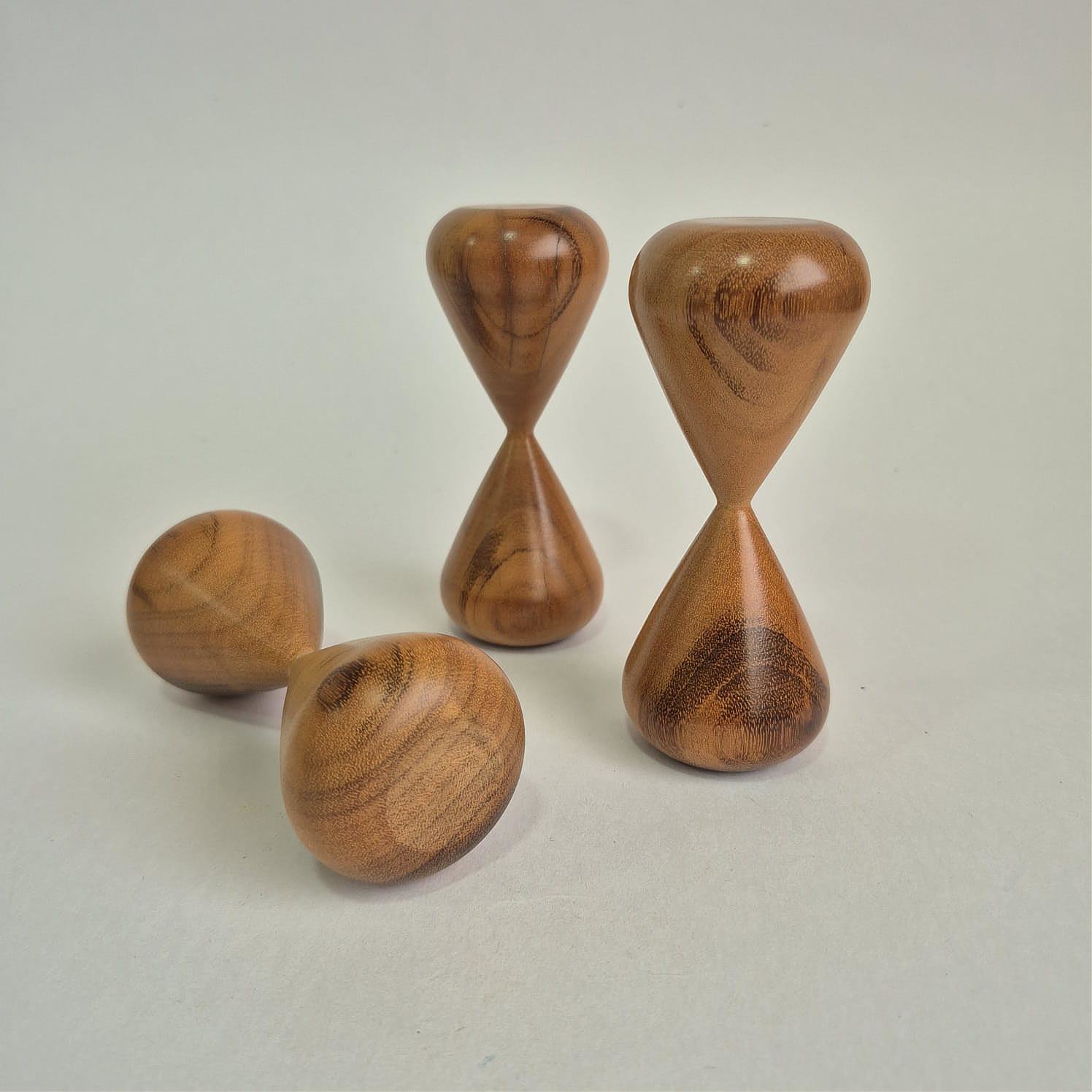 Foi desse desejo de eternizar o instante que nasceu esta ampulheta: uma peça que transforma o tempo em algo vivo, moldada em madeira — matéria orgânica, cheia de história — e, ainda assim, quase eterna.