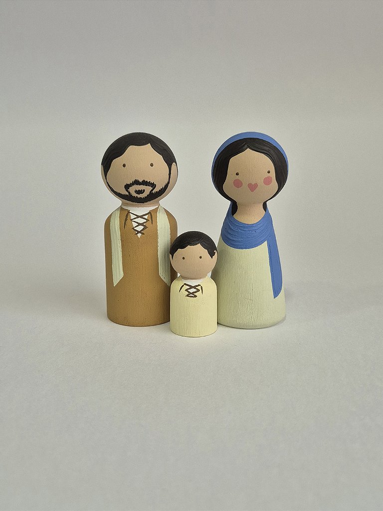 Bonecos maiores em madeira, altura 9cm, diâmetro aproximado 4cm;